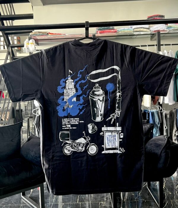3x R$ 20,00 s/ juros R$ 51,00no Pix CAMISETA GG K-TRON AZUL BEBE ESTAMPA PRETO E MARROM