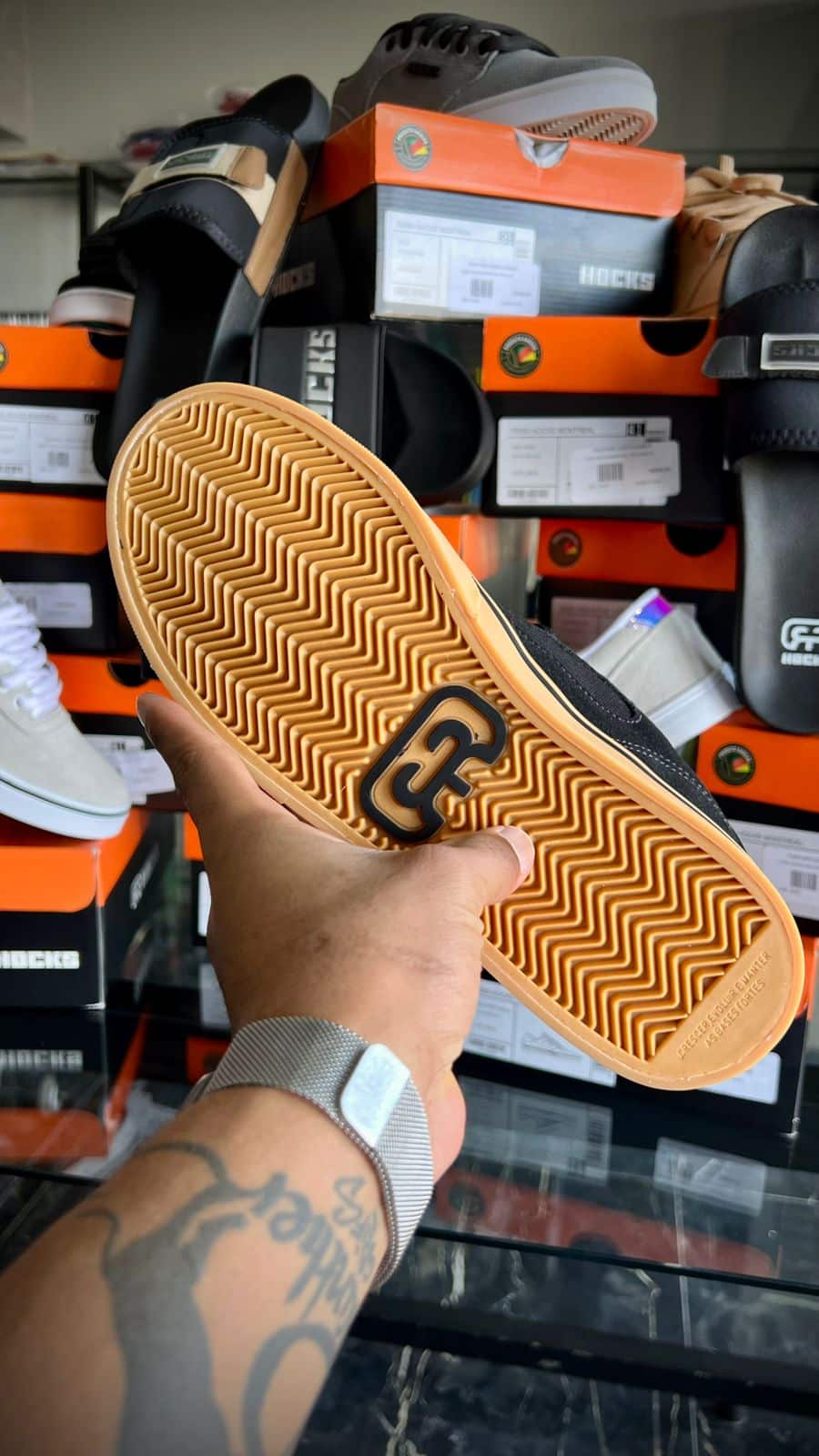 3x R$ 20,00 s/ juros R$ 51,00no Pix TENIS HOCKS FLAT LITE PT/NATURAL 38